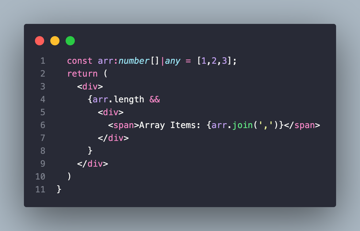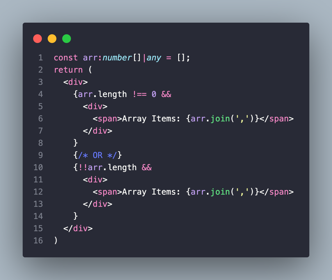 이를 통해서 아래와같이 코드를 짠적이 많을텐데요, 아래 코드는 arr의 length가 존재하면 Array items를 화면에 뿌려주는