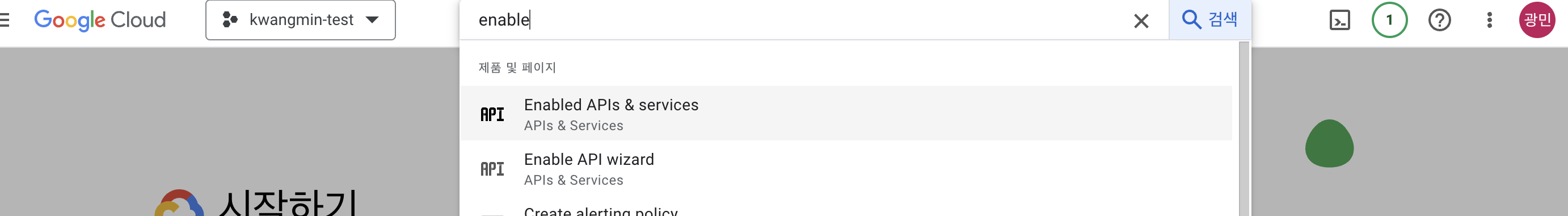 3. 검색창에 "enable" 을 검색하셔서 아래와 같이 Enabled APIs & services 를 클릭 합니다.