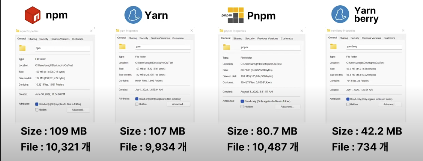 참고로 Yarn과 Npm은 다운로드를 받았는지만 검사하고 , 의존성 모듈들이 "잘" 다운로드가 됐는지는 확인을 안한다고 합니다.